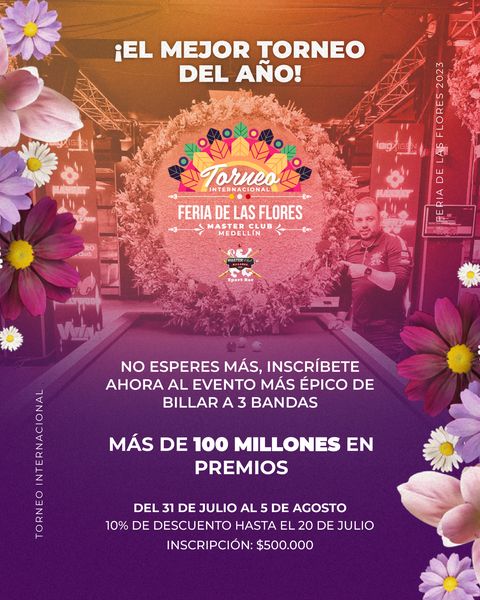 Este torneo se jugara en Medellin Antioquia durante la celebracion la mitica feria de las flores, en las instalaciones del Club Master