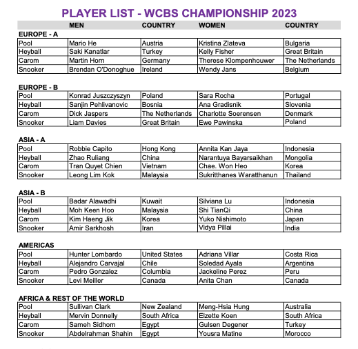 En el Campeonato WCBS 2023, las diferentes disciplinas del billar se presentarán en una competencia intercontinental por equipos.